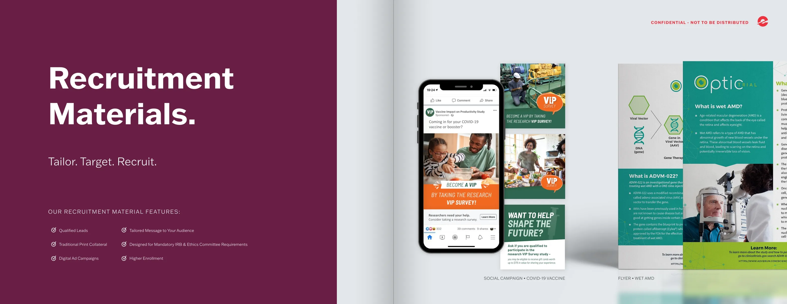 Materials developed with patient advocacy and recruitment goals in mind, guided by insights from social listening and keyword research.